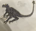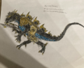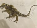 Anguirus is ankylosaur kaiju who made his debut in Godzilla Against the World. The last hold out of the Anomalopelta mojavenensis species, he was awakened from 900 years of hibernation by the Xiliens who controlled him to destroy Las Vegas. After being pummeled by Godzilla during there fight in Las Vegas, he was snapped out of Xilien mind control by Mothra and helped fight King Ghidorah during the Daikaijū Legion's showdown with him in London. Following the Battle of London, Anguirus became one of Godzilla's primary allies, serving as his confidant and second-in-command of the Daikaijū Legion. During the Martian Ravage Arc, the Martian's Nine-Dimensional ally Allotaurus pummeled the armored eartheater to death, before he was revived by the Djinn Adaktoura through Chinatsu's wish. He unlocks his Volcano Anguirus during the Planet Zeta Arc, and unlocked his Supercharge Class U form in the Assembly of Three Arc.