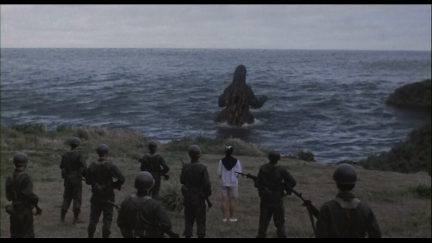 In 1954, an American hydrogen bomb test conducted in the South Pacific completely destroyed the underground habitat of a gigantic prehistoric amphibious reptile, killing the other members of its species and drawing it to the surface. Enraged, burned and heavily irradiated, this creature began sinking all ships that it came across, plunging the nation of Japan into a panic. The natives of Odo Island, a small island located in the waters off Japan, believed the shipwrecks were caused by Godzilla, a terrifying sea monster from their folklore which they believed would come ashore to feed on humanity after eating all fish in the sea. One night, the creature came ashore on the island during a typhoon and destroyed a village there. Shortly afterward, a research party headed by Kyohei Yamane traveled to the island, where they witnessed the creature appear over a hillside. Naming the monster "Godzilla" after the being from the island's folklore, Yamane proposed that the creature was brought to the surface after repeated H-bomb testing destroyed its natural habitat. Eventually, Godzilla surfaced from Tokyo Bay and destroyed the outskirts of Tokyo before returning to the ocean. The J.S.D.F. mobilized and attempted to fend off the creature when it surfaced again, but was unsuccessful. Godzilla reached the heart of Tokyo and completely destroyed the city in one night, leaving it a smoldering wasteland by morning. Reluctantly, scientist Daisuke Serizawa agreed to use his experimental chemical weapon, the Oxygen Destroyer, to stop Godzilla. Godzilla was tracked down while resting under Tokyo Bay, and Serizawa donned a diving suit to use his device. Serizawa activated the Oxygen Destroyer on the sea floor and severed his line, ensuring the weapon could never be used again. Godzilla rose to the surface one last time and roared before sinking to the ocean floor, where he was disintegrated by the Oxygen Destroyer. Dr. Yamane solemnly warned that Godzilla couldn't have been the last of his species, and that if nuclear testing continued, another Godzilla would surely appear.