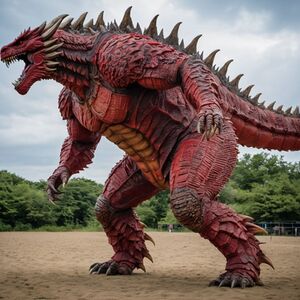 Titanus Mukmbushi Mukmbushi is a 300 feet tall titan who stands on 4 legs and has a tail with thagomizers Mukmbushi emits a low rumbling sound when threatened he has poison glands near his ears. Abilities Poison Glands when threatened Mukmbushi releases poison into the air the poison is highly corrosive to metal Fire Breath Mukmbushi has the ability to release flammable gas to ignite the gas Mukmbushi releases a single spark igniting the gas to release the spark Mukmbushi clicks his tongue about four times like a striker Mukmbushi was first spotted 2000 years ago in Iceland, it is known that Mukimbushi was born around the same time as Godzilla and the two also have a seemingly brotherly relationship aiding each other in battle godzilla and mukmbushi share some of the same attributes such as blue dorsal plates -MORE TO BE ADDED-
