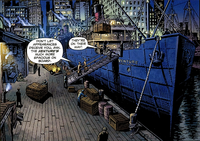 The Venture was an old tramp steamer operated by Captain Englehorn and was so rusted, and moored in such a dilapidated dock, that a passerby might have thought it was abandoned and surprised to discover it was a seaworthy vessel.[3] Englehorn and his crew had built a reputation for their live animal trapping, and their inclination not to ask questions. In 1933, the ship set sail for Skull Island. On arriving, it became caught in thick fog before getting trapped between rocks to all sides. The Captain and crew tried to maneuver out of them, but the ship hit a reef and a hole was torn in its hull, which the crew worked frantically to repair while scuttled.