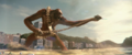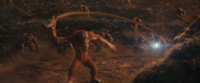 Later on, when Godzilla and Kong engaged the Skar King's army in Hollow Earth, he used the Whipslash against Kong, which he blocked using the B.E.A.S.T. Glove. In Rio de Janerio, the Skar King lassoed a building at Kong with the Whipslash, which Kong destroyed. While confronting Godzilla, the Skar King dodged a blast of his atomic breath and swung the Whipslash at Godzilla, who caught it with his jaws, threw him, and bit off the tip, sending the crystal clattering to the ground. As Kong and the Skar King fought to obtain the crystal, Suko arrived and destroyed it using Kong's axe, creating a shockwave that sent all five Titans flying.