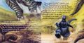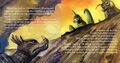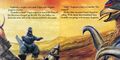 During his absence, Gigan and Megalon take over Monster Island and drive the other monsters into hiding. Only Anguirus makes a stand against them, but Gigan and Megalon easily overpower him, trapping him in the crater of the volcano. Just in time, Godzilla arrives on the scene, scaring away the two bullies with a mighty roar. To the surprise of all, Godzilla then pulls Anguirus out of the crater with his tail. Touched by his heroic act, Anguirus and all the monsters play with Godzilla for the rest of the day, leaving Gigan and Megalon in disbelief.