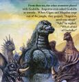 As the most powerful resident of Monster Island, Godzilla lives a lonely existence at the top of the tallest volcano. Whenever he tries to join Gigan, Megalon, Anguirus, Varan, Manda, Baragon, and Rodan in their games, they flee at the sight of him.