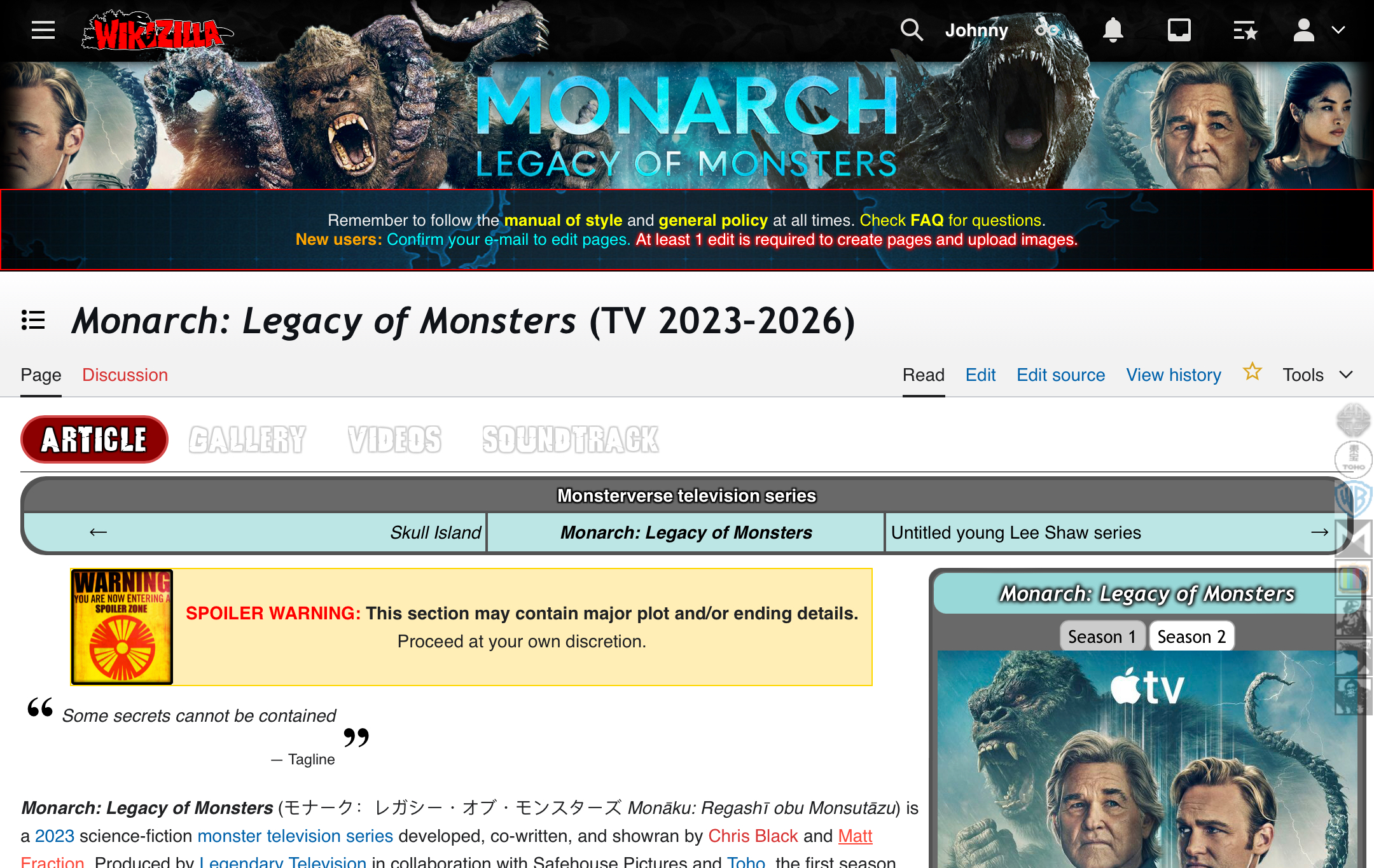 Wikizilla focuses primarily on the Godzilla franchise, along with the Gamera and King Kong franchises and other topics related to Godzilla and Toho. Wikizilla has over 3,200 articles and over 20,000 images, including screenshots, posters, concept art, production photos, and much more.
