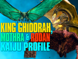 The Monsterverse King Ghidorah, Mothra and Rodan Kaiju Profile is the 60th episode of Wikizilla's Kaiju Profiles video series. It was uploaded on July 4, 2020. The design portion of the video was uploaded on August 27, 2020.
