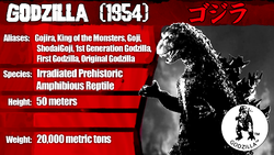 The Godzilla 1954 kaiju profile is the 4th episode of Wikizilla's Kaiju Profiles video series. It was uploaded on February 2, 2017.