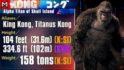 The MonsterVerse King Kong kaiju profile is the 70th episode of Wikizilla's Kaiju Profiles video series. It was uploaded on April 8, 2022.