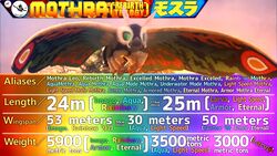 Aliases: Mothra Leo, Rebirth Mothra, Excelled Mothra, Mothra Exceled, Rainbow Mothra, AquaMothra, Aqua Mothra, Aqua Mode Mothra, Underwater Mode Mothra, Light Speed Mothra, Light Speed Mode Mothra, Armor Mothra, Armored Mothra, Eternal Mothra, Armor Mothra Eternal