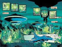 In 1996, the Xiliens invaded Earth, using their vast fleet of UFOs to decimate countless cities with ease. In Tokyo, Godzilla destroyed many of the UFOs before being captured and placed in suspended animation, with one of the UFOs bringing him to Xilia, an Xilien city established on Mars. Over the next few months, Dr. Ogilvy Hu and his android, Hoshi, used downed Xilien UFOs to reverse-engineer their technology and develop more weapons for humanity to use in the fight against their alien invaders; they also learned more about the Xiliens by having Hoshi connect to their UFOs' A.I. systems. Discovering that the Xilien UFOs were controlled by a master signal being sent from Xilia, a daring mission was launched to sever the signal using the P-1 X, piloted by Captain Daitan Matsushita and Hoshi. After the P-1 X arrived on Xilia, a fleet of UFOs was dispatched to stop them, with one landing a hit on the aircraft's right wing before it crashed into King Ghidorah's body. After Godzilla ran amok and destroyed the control tower generating the master signal, Captain Matsushita and Hoshi commandeered an Xilien UFO and used it to return to Earth.