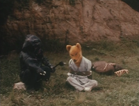 As Kotaro Ushiwaka and Uragira were walking through a forest, Yamanosei grabbed Uragira from behind a tree and restrained him. Shortly thereafter, Uragira was seen tied up with a rope as Yamanosei prepared to eat him, but Uragira convinced the yokai to go after Kotaro instead. When Kotaro approached along his path, Yamanosei confronted him while Uragira fled the scene. Yamanosei charged at Kotaro, but disappeared when the latter slashed with his naginata. The yokai reappeared behind him, but disappeared a second time with the next attack. Quickly realizing that it was using a Cloning Technique, Kotaro ignored the yokai in his vision and instead blindly threw a dagger at a nearby tree, causing Yamanosei to teleport there and reveal himself. The pair then engaged in combat, until Yamanosei suddenly spit a strand of webbing at Kotaro, which expanded into a net that covered the upper half of his body. Luckily, Kotaro managed to begin vaulting himself with his naginata to repeatedly kick Yamanosei, eventually sending him tumbling down a set of stairs and knocking him out cold.