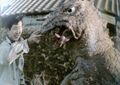 Yonggary breathing fire - The apparatus in the suit used for this is clearly visible, and can be seen in several other scenes in the film