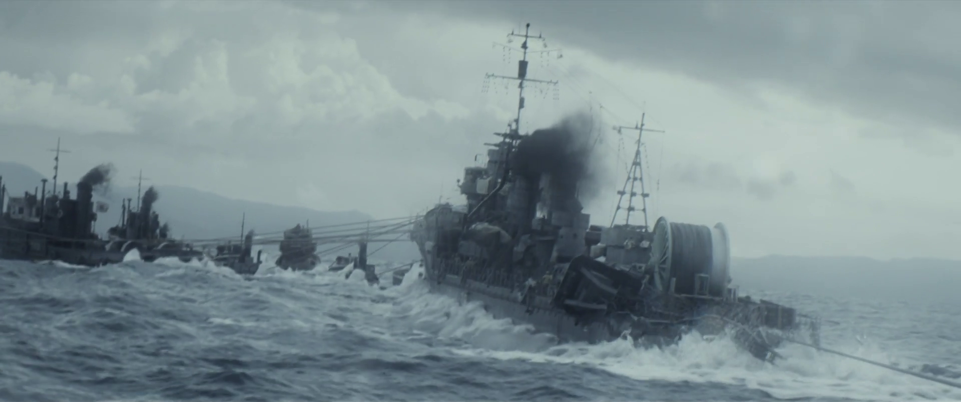 Yukikaze being given assistance in pulling Godzilla to the surface by half of the fleet of tugboats led by Mizushima
