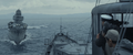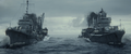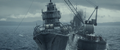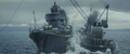 Yukikaze and Hibiki withstanding the waves created by the explosion