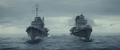 Yūkaze and Keyaki sailing together toward Godzilla