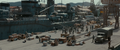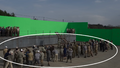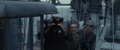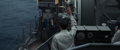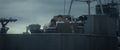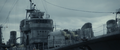 The limited budget of Godzilla Minus One made it impossible to create individual sets for every warship that appeared in the film, so only one side deck section of a ship was built. Every ship in the film used the same stationary set, including Yukikaze, Takao, and the Ukuru-class escort ship Ikuno. Shirogumi used VFX to extend the ship set and its surroundings in accordance with the needs of each scene. A set was also built for Yukikaze's bridge, but the budget didn't allow for hydraulic cylinders to be installed to make the bridge sway. Instead, a combination of cranes and actor performances were utilized to create the illusion of Yukikaze rocking during Operation Wada Tsumi. For the scene of Yukikaze returning to port, the side deck section was stationary, so the camera was moved on a rail.[2]