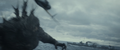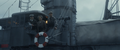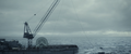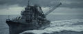 Yukikaze yanked backwards by Godzilla freeing himself from the cable after surfacing and suffering from barotrauma
