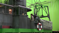 A crane lowering Freon canisters onto the racks on Yukikaze's stern