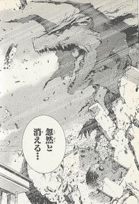 Zedus returned in full force, attacking the complex that Toto was being held in before unleashing his wrath on the rest of Nagoya. The two clashed once again, and like before, Zedus was quickly getting the upper hand. Overpowering the turtle with brutality, the creature tossed Toto into a building. The hero's body now stuck in the building, Zedus began to climb up.