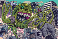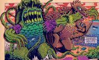 A monster capable of turning other kaiju into mindless zombies, Zoospora wasted no time spreading chaos across the globe as it infected Gorosaurus, Manda, and Anguirus within a matter of days and sent them on rampages. A task force formed to stop the monster lured Godzilla to Zoospora using Minilla as bait in a desperate plan. The threat of Zoospora came to a head in the heart of Tokyo in which Godzilla and the task force's Super MOGUERA battled against Zoospora and an army of monsters who had fallen under the fungus kaiju's influence.